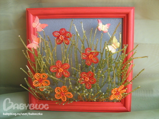 - Вышивка бисером. Хотя с бисером придется много повозиться, но результат будет просто превосходный. Бисер можно наклеивать на панно с помощью клея, а можно вышивать на ткани. Особого мастерства требует техника плетения. Зато какие разнообразные рисунки можно будет сделать!