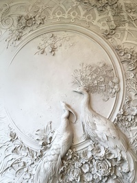 Для стиля барокко, преобладавшего в архитектуре XVII-XVIII веков, также характерно обилие скульптурных и барельефных изображений. Они служили для того, чтобы подчеркнуть роскошь интерьера. Как правило, для их создания использовались мифологические сюжеты.