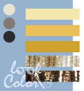 Светло-голубой сочетается с желтым: абрикосовым, шафрановым, кукурузным, ярко-золотом, темно-желтым. База: кремовый, темно-бежевый, мокрый асфальт.