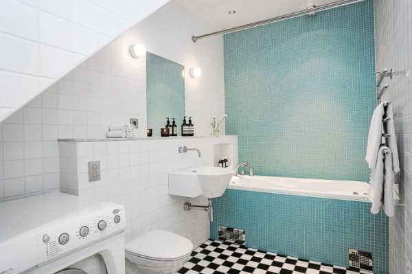 - Бело-голубой интерьер чаще всего используется при оформлении ванной. Данное сочетание создает эффект невесомости, способствует расслаблению. Из-за этого бело-голубой цвет добавляет света и больше всего подходит для комнат с маленькими окнами. Такое сочетание не требует ярких элементов декора, иначе эффект воздушности пропадет, но будут уместны пастельные тона бежевого и розового.