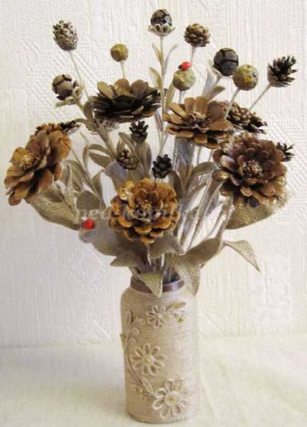 Цветы из шишек станут изюминкой интерьера