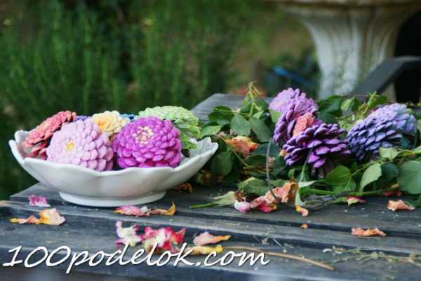 Яркие цветы из шишек