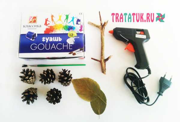 Для работы просто необходим клеевой или термопистолет. Никакой супер клей не скрепит узкой кончик веточки с шишкой!