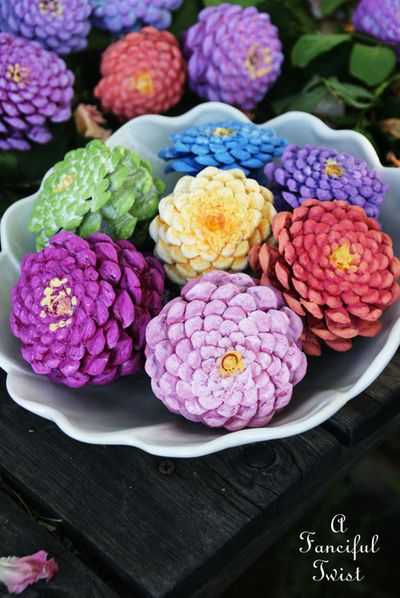 Немного краски, и ваши шишки расцветут, как самые настоящие цветы. Просто положите шишки в вазу и поставьте в гостиной. Гости будут в восторге от такого декора!