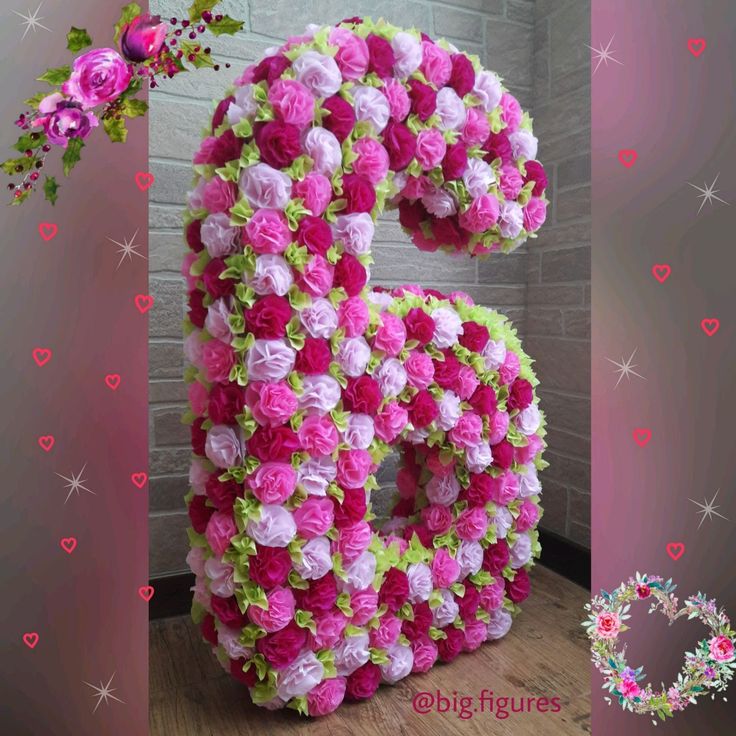 Приклеиваем цветы-помпоны к цифре.