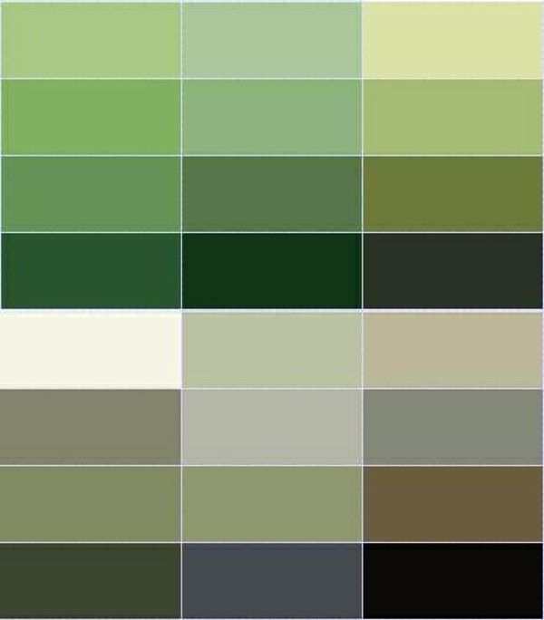 Moжнo выдeлить шecть oливкoвыx oттeнкoв.
