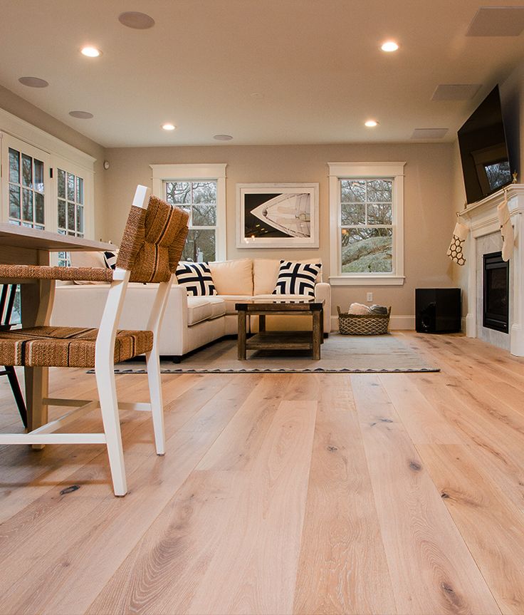 Естественный незаконченный вид полов из дуба или сосны с прозрачным матовым покрытием для защиты от износа создает простое, успокаивающее ощущение, которое создает прекрасную основу для стиля Scandi в нейтральных тонах белого, черного, коричневого и серого. Широкие доски выглядят современно, но создают вневременной, привлекательный вид, который переживет модные тенденции.