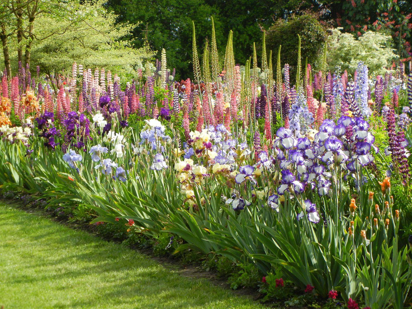 Но время от времени необходимо рыхлить, пропалывать, поливать, чтобы декоративность всегда была на уровне. Через два года большинство цветов нужно рассаживать, так как они очень разрастаются. Рекомендуются флоксы, все виды дельфиниума, герань, клематис, гвоздика, армерия, ирисы, колокольчики, ромашки, шалфей, васильки, эхинацея.