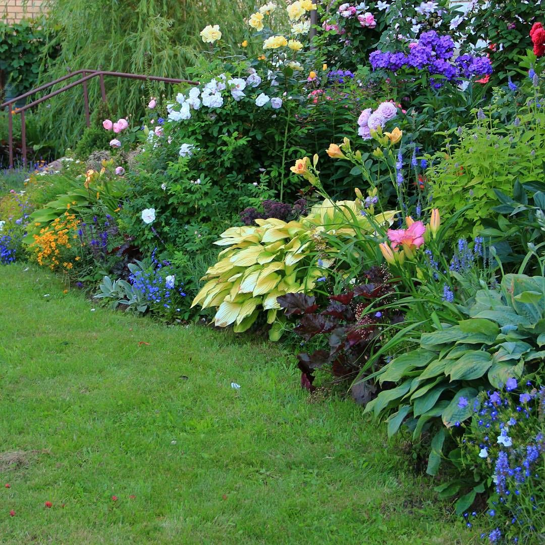 Желательно высаживать впереди неприхотливые низкорослые многолетники, такие как: