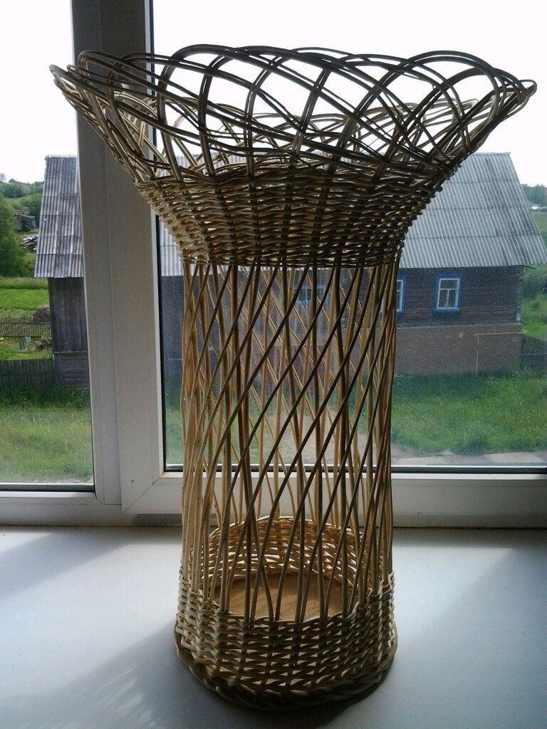 - Из лозы возможно сплести что угодно: вазу, подставку для цветов, даже домик для кошки;