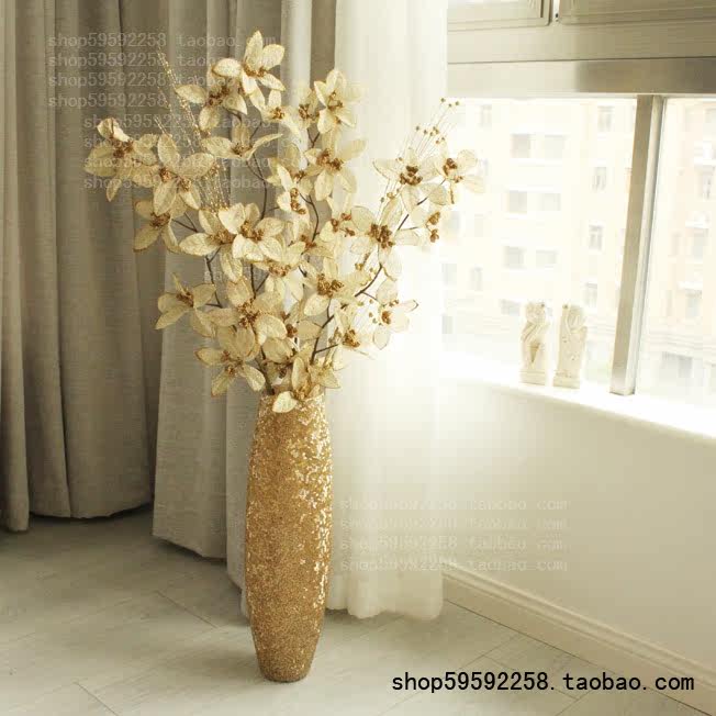 Ветки для напольной вазы можно покрасить в золотистый цвет