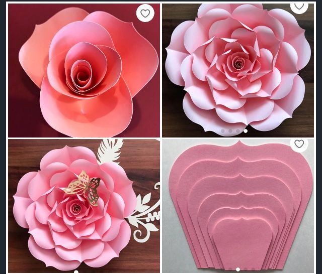 гигантских бумажных роз — стиль Элла — очень большие, большие, средние и маленькие