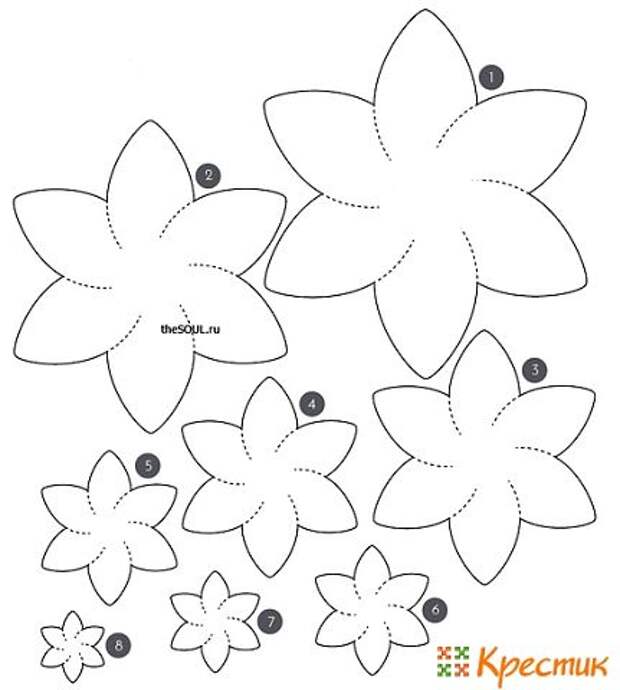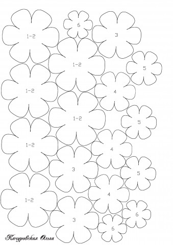 Ниже приведены шаблоны, по которым можно вырезать лепестки будущего цветка.
