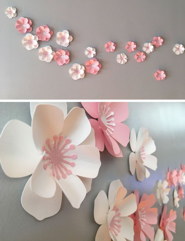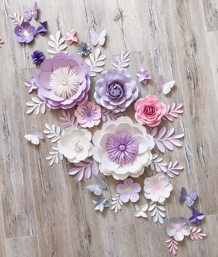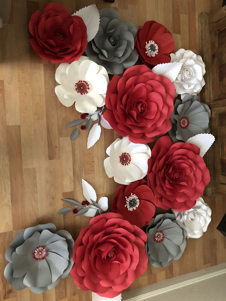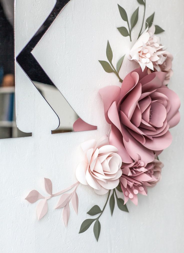 Точно так же, как вы делаете маленький бумажный цветок, только больше! Вырезать вручную большие цветочные детали из картона утомительно, поэтому я определенно рекомендую использовать Cricut.