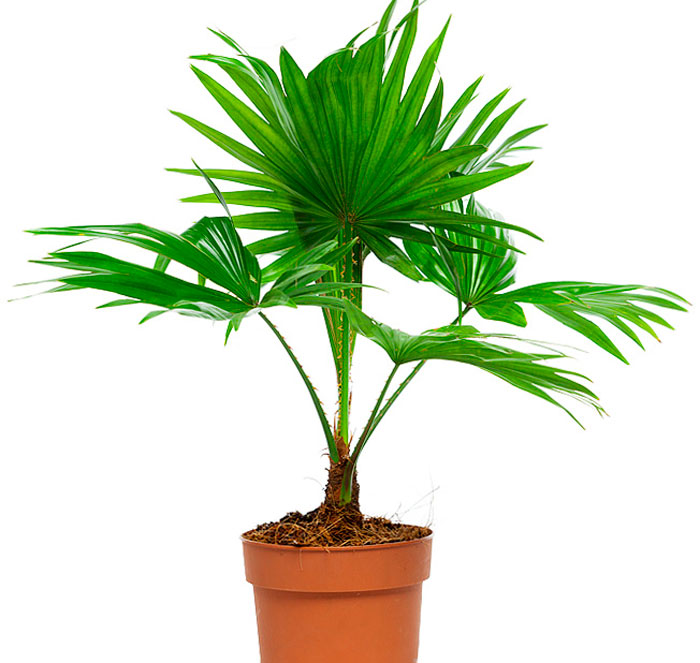 Поливайте, когда верхний слой почвы кажется сухим. Выберите большой горшок, в котором поместится длинный стержневой корень китайской веерной пальмы. И подкармливайте эту пальму раз в год весной медленнодействующим удобрением.