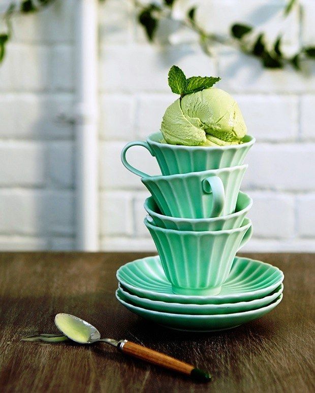 Мятный и холодный зеленый сочетание в своей гамме образует градиент от светлого до темного, что в свою очередь создает объем и глубину. В данном случае основным контрастом будет световой. Вы с можете подчеркнуть форму не выходя из одного оттенка. Рассмотрите палитру с цветом воды, изумрудно-зеленым, серо-изумрудным, изумрудным, малахитовым.