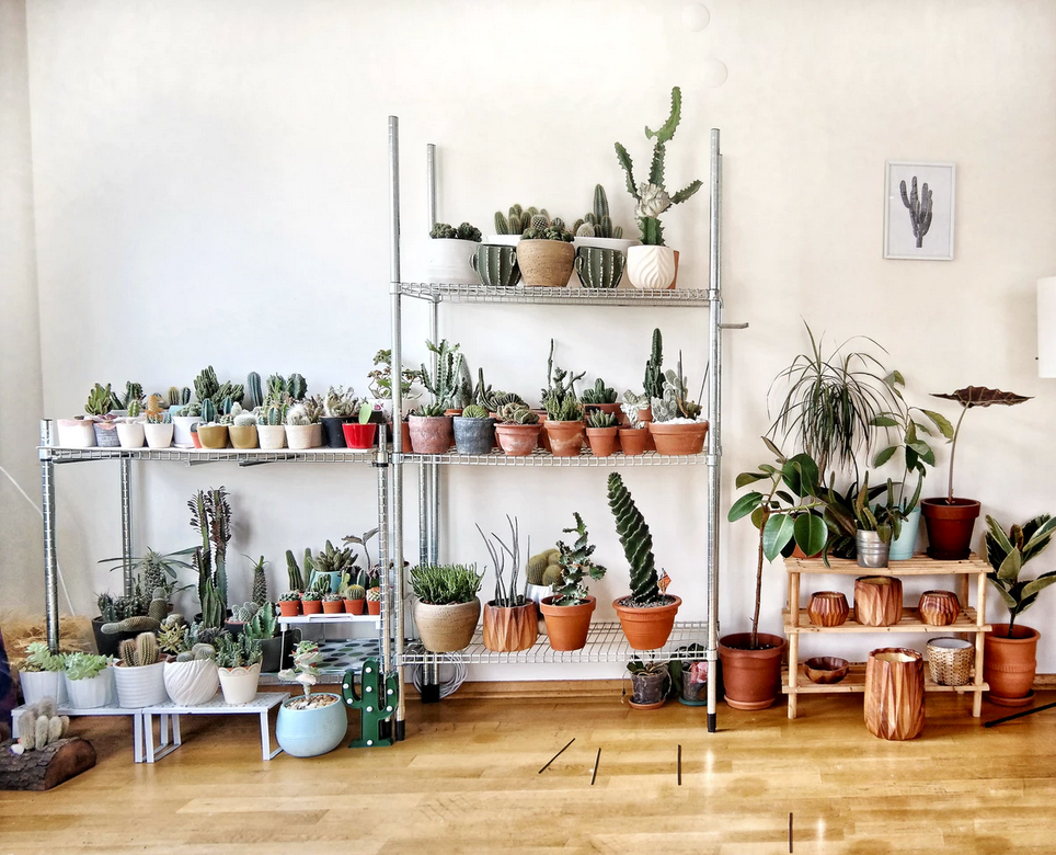 Если вы ставите растения внутри помещения, лучше, чтобы они расположились на разных уровнях. Для этого используйте полки или специальные подставки и этажерки для цветов. Эти конструкции должны быть крепкими и надежными. Расставьте цветы максимально практично, чтобы было удобно их поливать. Поэтому не устанавливайте горшки слишком высоко.