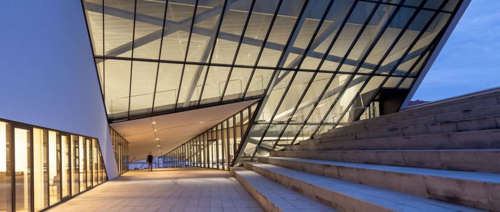 Музей, филиал Имперского военного музея в Лондоне, демонстрирует военную технику, такую как прыжковый реактивный самолет «Харриер» и русский танк Т-34, на фоне визуального и звукового шоу, которое поражает чувства, рассказывая о мрачности войны. Но дизайн Либескинда также рассказывает ужасную историю — от раздражающих фрагментированных форм до дезориентации, вызванной ходьбой по изогнутому полу.«Вся идея музея заключается в самом здании, — говорит Джим Форрестер, восторженный директор музея. «Принцип заключается в том, что война формирует жизни. Войны и конфликты разрушают мир; часто фрагменты можно снова собрать вместе, но по-другому ».
