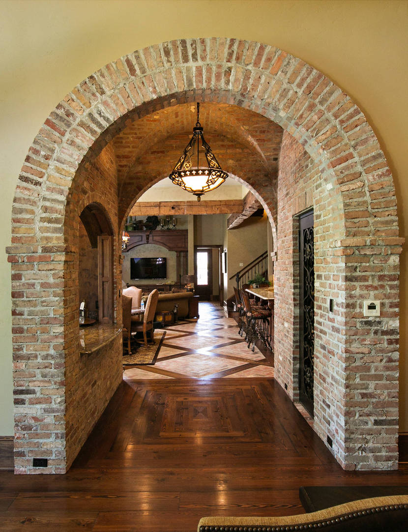 Арочные проемы из кирпича отлично смотрятся в модных интерьерах в стиле лофт и модерн.