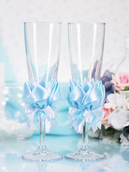 Фужеры для шампанского являются одним из главных украшений свадебного стола, они должны выглядеть эффектно и стильно, а также поддерживать общую стилистику свадьбы. Поэтому прежде чем приступить к работе, вы должны определиться с дизайном и цветом.