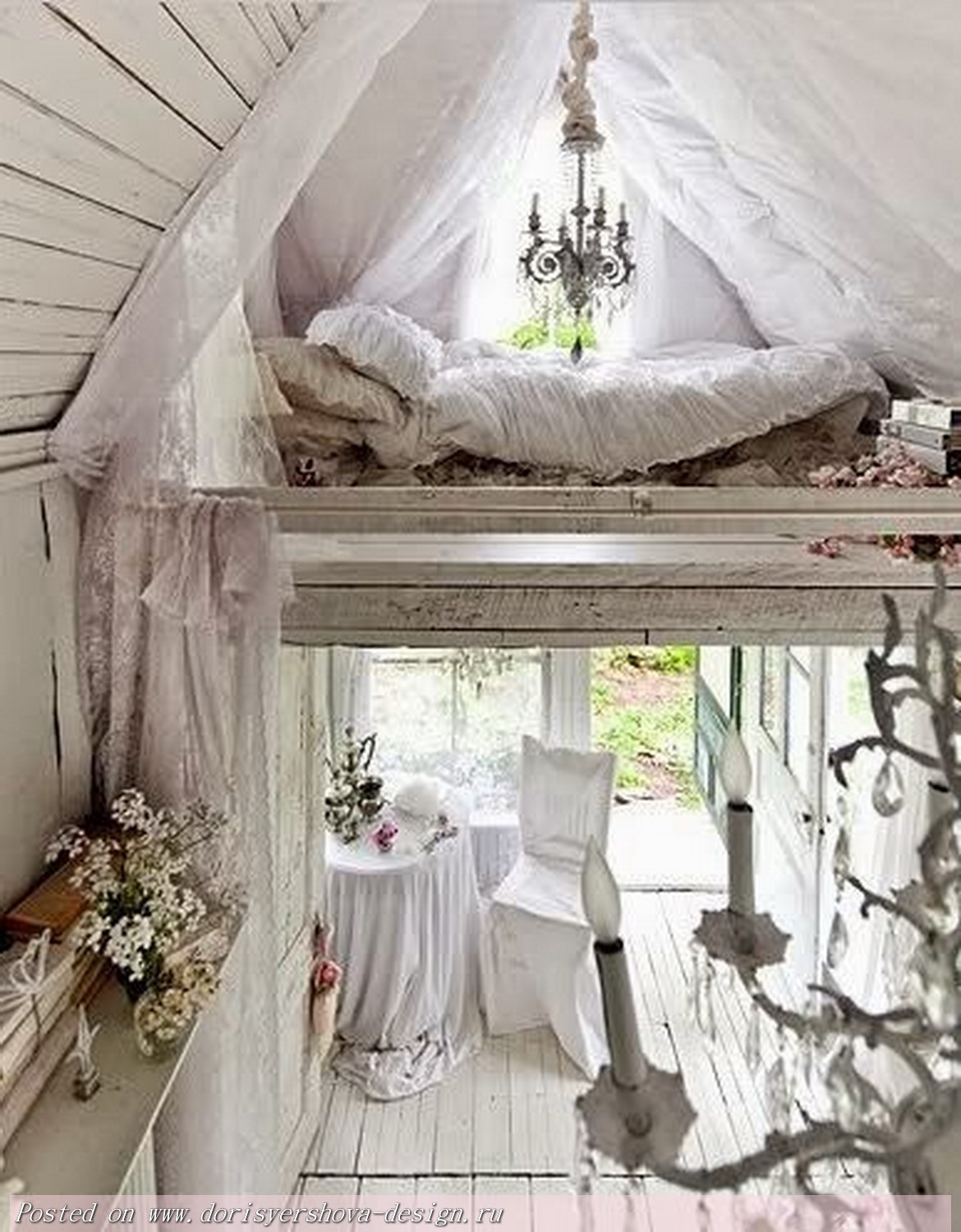 Пример декора спальни в деревенском стиле в белом цвете