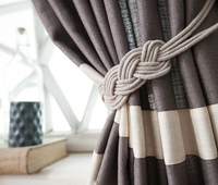 Такие крепления красиво оттягивают штору к сторонам оконного проема, чтобы впустить больше света в помещение и добавить изюминки интерьеру. С этой функцией отлично справляется декоративный шнур, который может быть украшен плетением или кистями.
