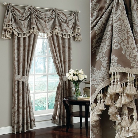 Варианты отделки классических штор бахромой, кистями, тесьмой