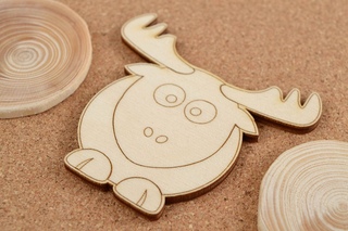 - По трафарету на заготовку переносятся контуры рисунка, после чего акриловыми красками делается роспись. Краска наносится и на торцы фигурки из фанеры;