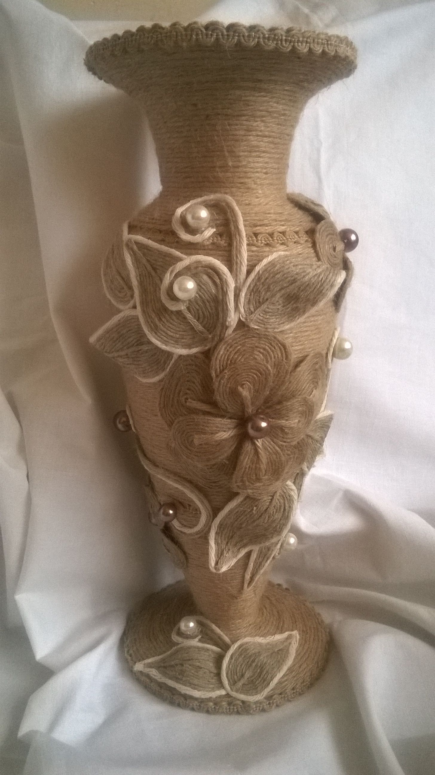 Это один из методов оформления предметов интерьера. Используя его, можно оригинально оформить абажур, вазу, кашпо для цветов. Для того чтобы бечевка не разматывалась, лучше всего использовать в работе клеевой пистолет или клей ПВА.
