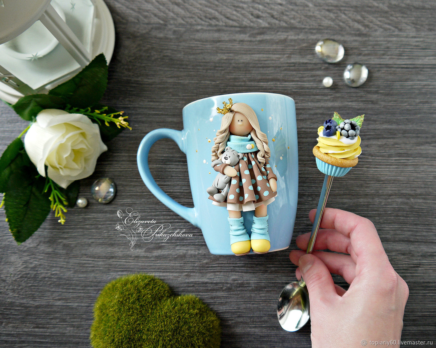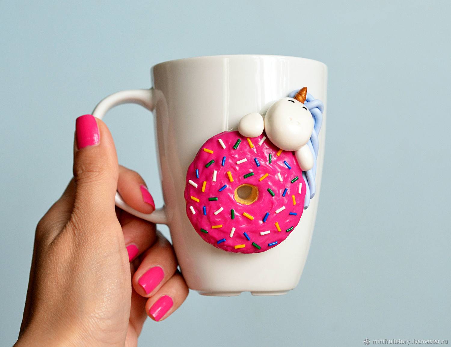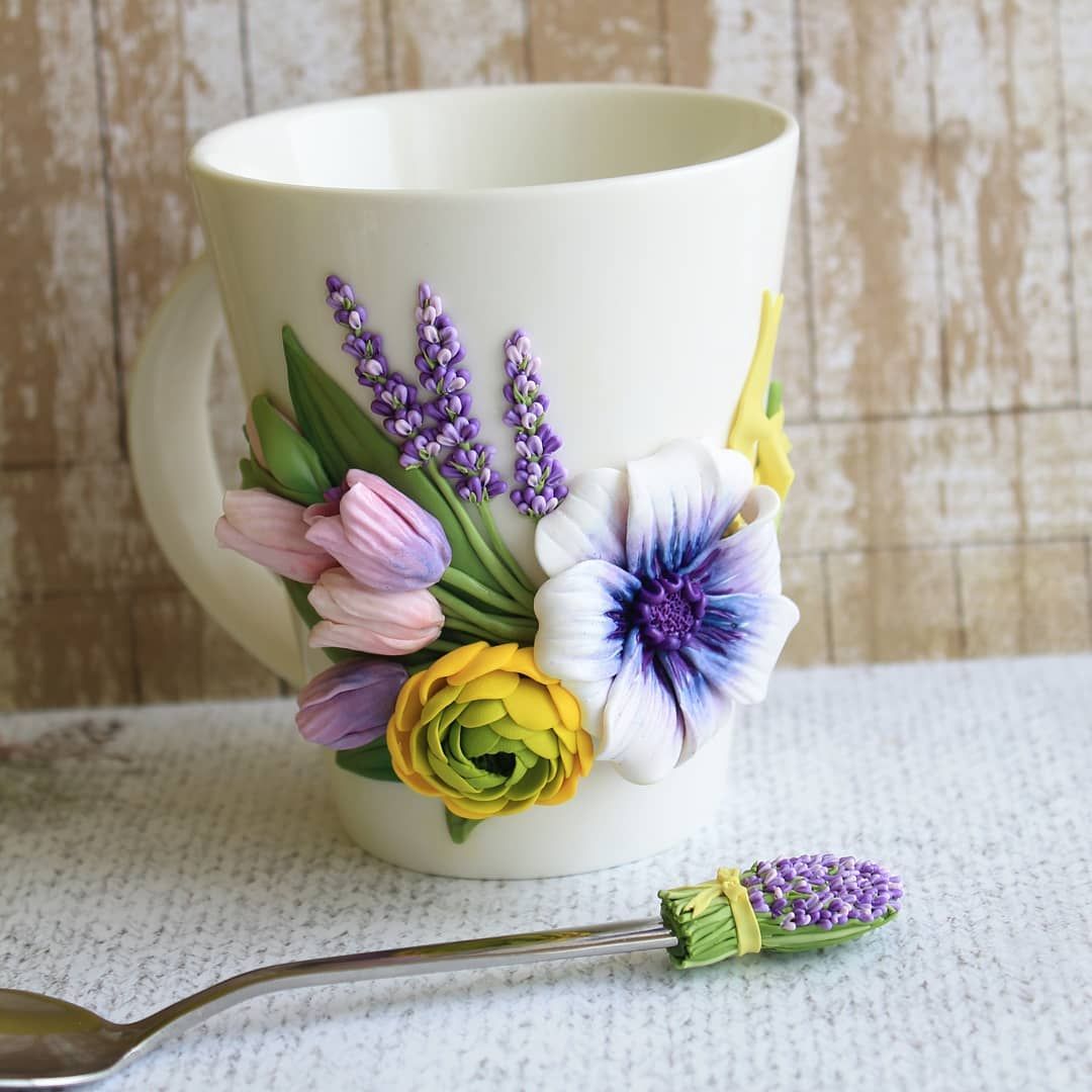 Кружки, декорированные полимерной глиной (запекаемой полимерной глиной), в последнее время стали очень популярны. Этот удивительный материал, так похожий на пластилин, отлично подходит для создания удивительных поделок, и, в то же время, помогает сохранить эту красоту на долгие годы. Мастерица создает эти кружки на заказ, учит работать с этой глиной на мастер-классах и охотно делится своими секретами. Обязательно попробуйте поработать с полимерной глиной, ведь сделать такой подарок своими руками на удивление легко!