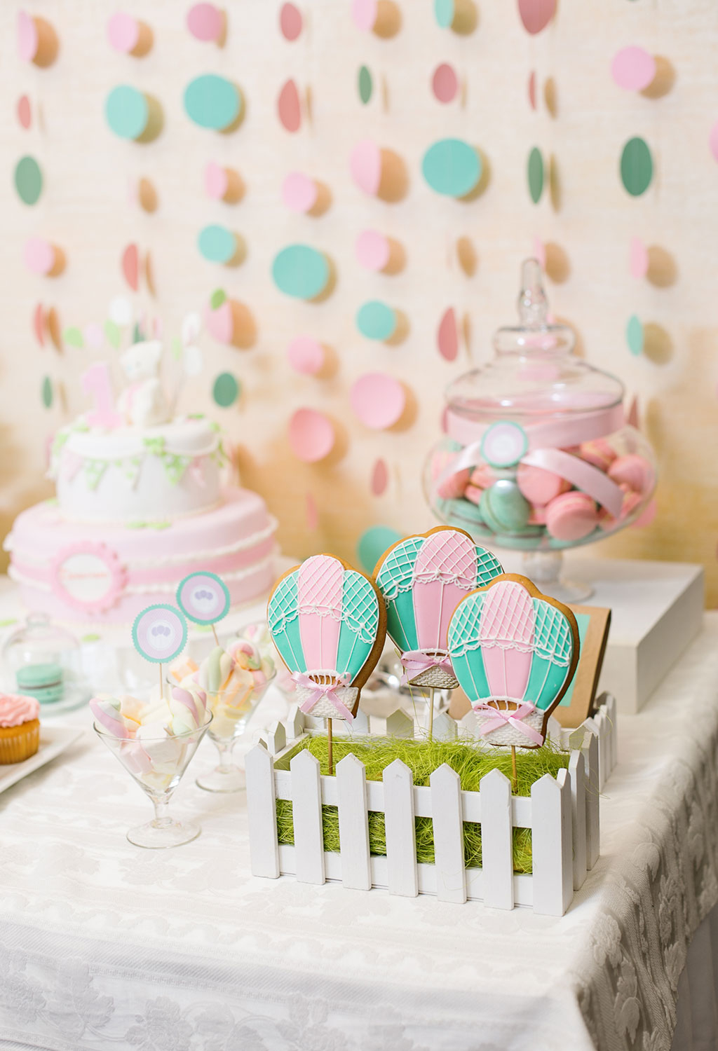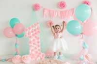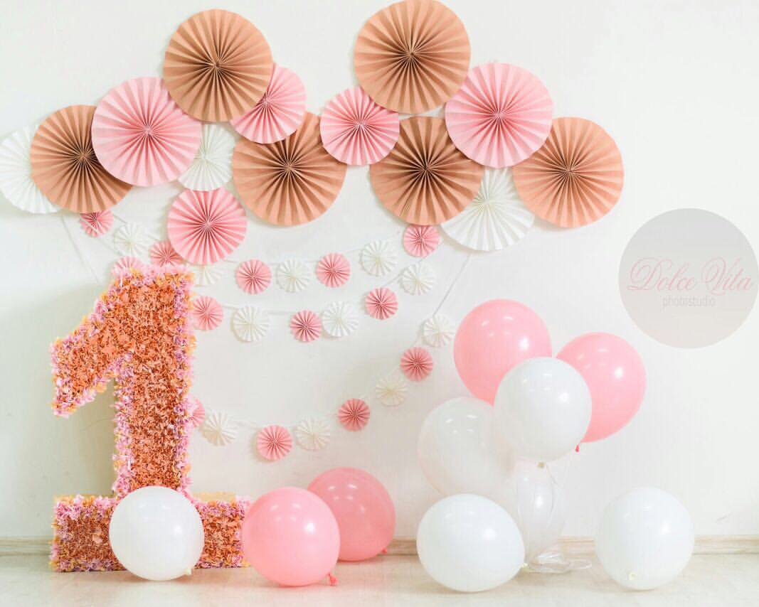 Сначала нужно определиться с цветовой гаммой. Для малышки лучше подойдут нежные светло-розовые или персиковые тона, но следите за тем, чтобы праздничные аксессуары не сливались в одно однотонное пятно, не пестрили яркими разнообразными пятнами – все должно быть гармонично.