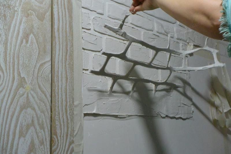 Когда справитесь и с этой задачей, заколотите штукатурку до пластичной, но не текучей массы и разнесите её по обрабатываемой стенке. Только не надо ничего выглаживать, текстура должна получится довольно неровной, каменной.