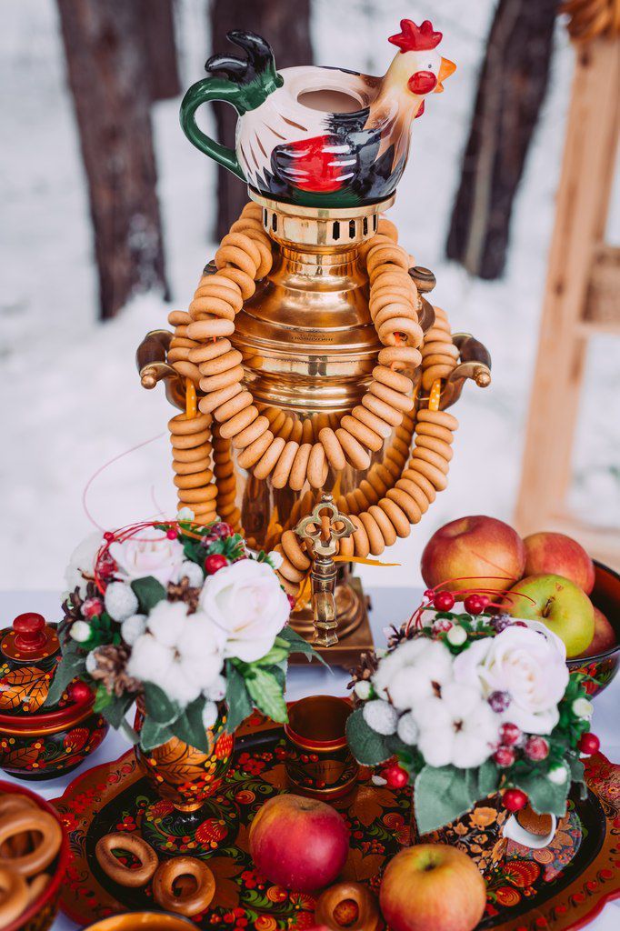 Колоритное украшение стола — самовар и коллекция матрешек, особенно если она давно хранится в семье.