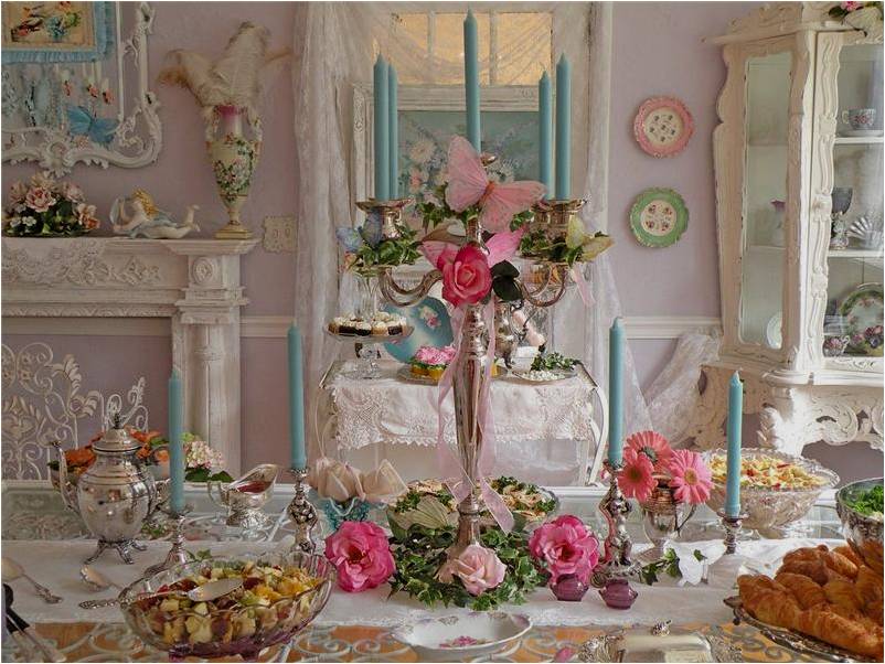 Большая роль отводится украшениям и аксессуарам для интерьера. Винтажный декор отчасти напоминает прованский: декоративные клетки, диванные подушки в уникальных наволочках, фарфоровые статуэтки, изящные подсвечники, шкатулки, сундуки.