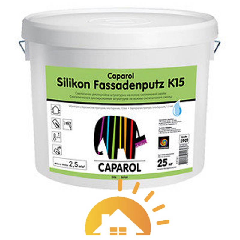 Декоративная штукатурка Caparol на акриловой основе — отличный вариант для фасада. Она отталкивает воду и не нагружает фундамент, удобна в нанесении и эксплуатации, а еще она препятствует образованию грибка. Декоративная штукатурка из коллекции Fassadenputz изготавливается в Германии и имеет структуру бороздчатой штукатурки с фракциями 2,0 мм. Она выпускается в белом цвете с матовым блеском, но при этом колеруется в другие цвета. Штукатурка Caparol Fassadenputz фасуется в Ведро 25кг и имеет расход 2,8 кг/м2.