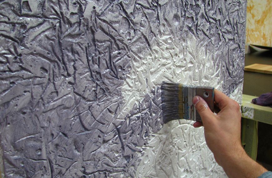 Возьмите краску двух оттенков: светлый и темный, чтобы рельеф декоративной штукатурки стал четче и глубже.Ниже этот мастер-класс расскажет, как правильно красить декоративную штукатурку.