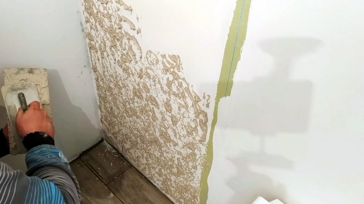 Если вы планируете создать более ровный рельеф, вам необходимо приложить к стене прорезь из мягкого материала, равную по размеру зоне покрытия. Он должен продержаться на стене сутки, а потом его можно будет снять. После такой процедуры образуется желаемая текстура. Чтобы увидеть создание текстуры шубы на практике, рекомендуем посмотреть следующее видео: