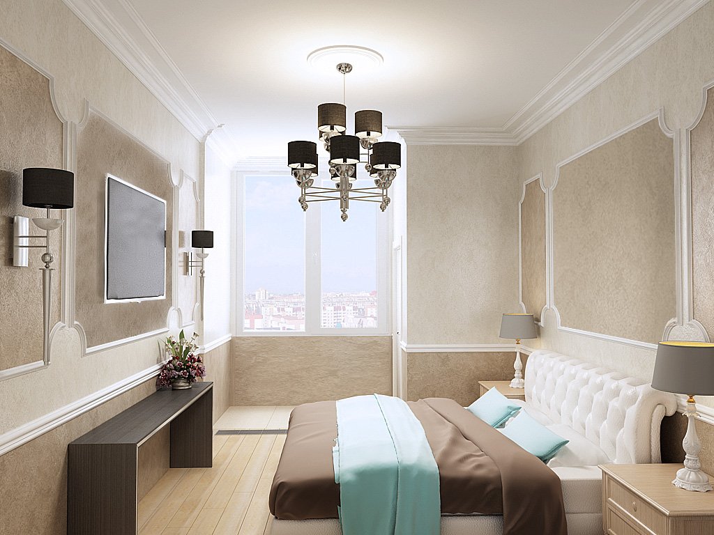 В таких комнатах хорошо смотрятся самые разные оттенки и фактуры. Для спальни замечательно подойдут поверхности под бархат, шелк. Выделить акценты можно с помощью «короеда».