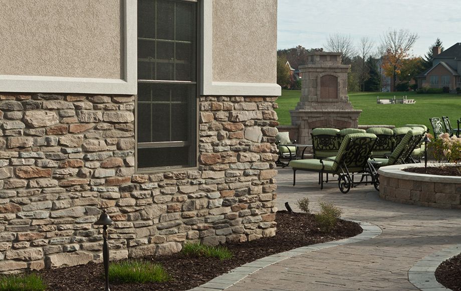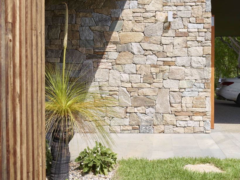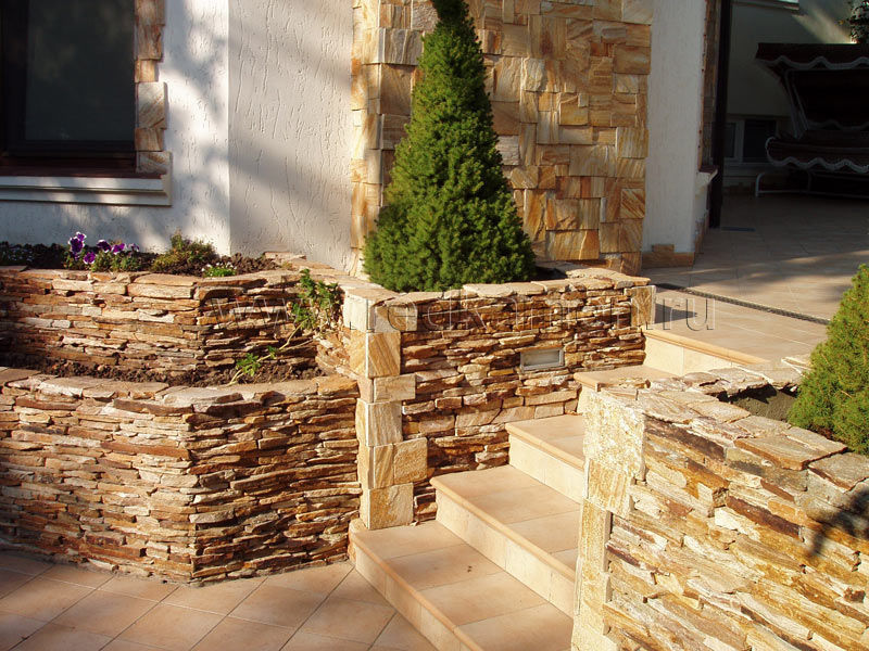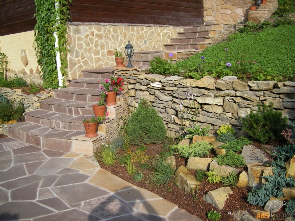 Натуральный камень для различных ландшафтных проектов, таких как плиточные дорожки и внутренние дворики или подпорные стены из натурального камня.