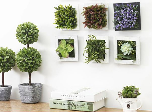 Очень необычны живые украшения на стенах. Это так называемые «зеленые стены». В некотором объеме высаживаются живые растения. Они подбираются разных цветов, видов, с разной формой листьев. Можно делать такую композицию в виде картины в рамке, с обязательной подсветкой. Только надо будет не забывать регулярно поливать декор…
