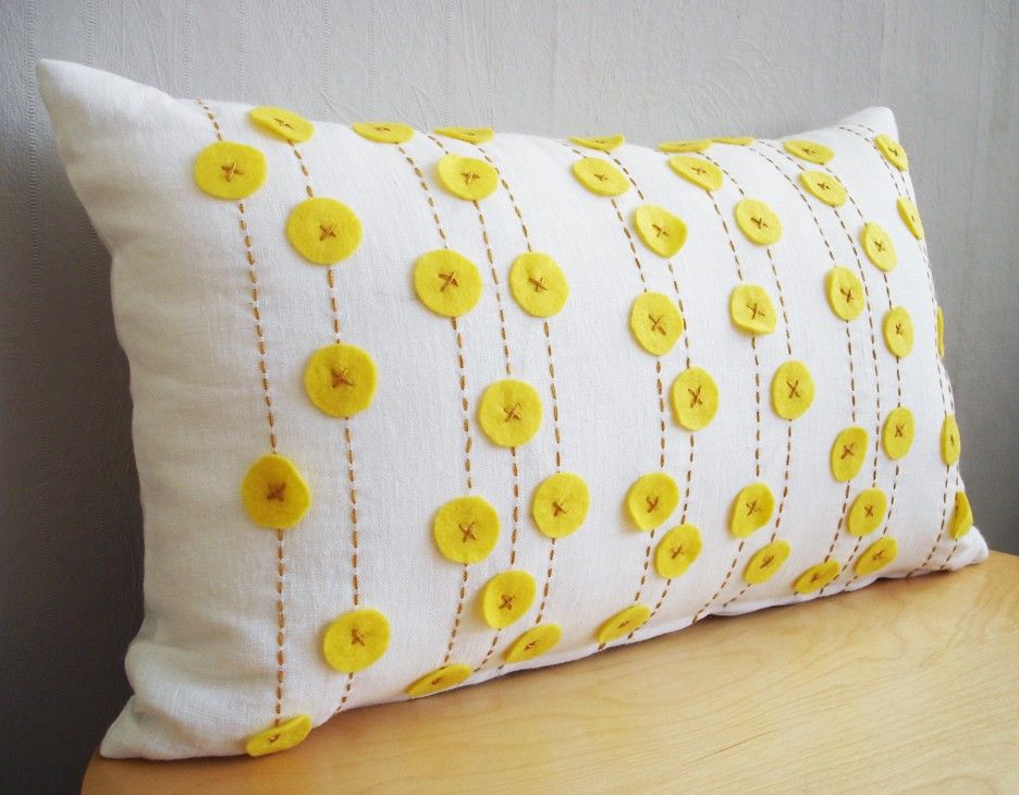 Просто и интересно можно декорировать подушки пуговичками. Импровизируйте.