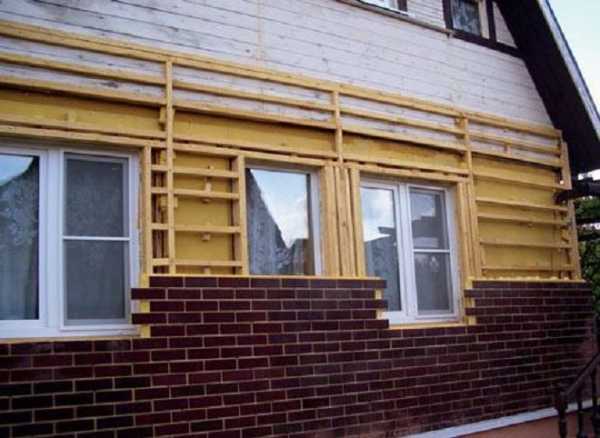 По поверхности стен крепится паропроницаемая пленка или супердиффузионная мембрана, затем монтируется брус сечением 40х40 мм с шагом 40–60 см, по углам здания и вокруг проемов. На брус крепят контробрешетку сечением 40х25 мм с шагом, равным высоте панелей, в горизонтальном направлении.