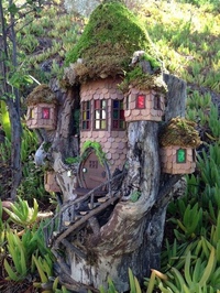 Маленький коттедж может – это небольшой сказочный мир в вашем саду. Для его создания понадобятся камни, раковины, куски дерева и т.д. Все это крепится на клею и устанавливается на цементный фундамент.