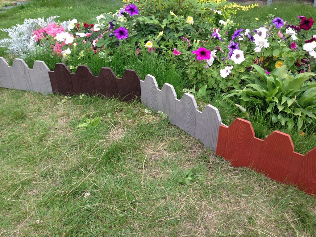 - чтобы просто разделить газон и цветник, обозначив границу клумбы, подойдет низенький скромный заборчик высотой 5−7 см