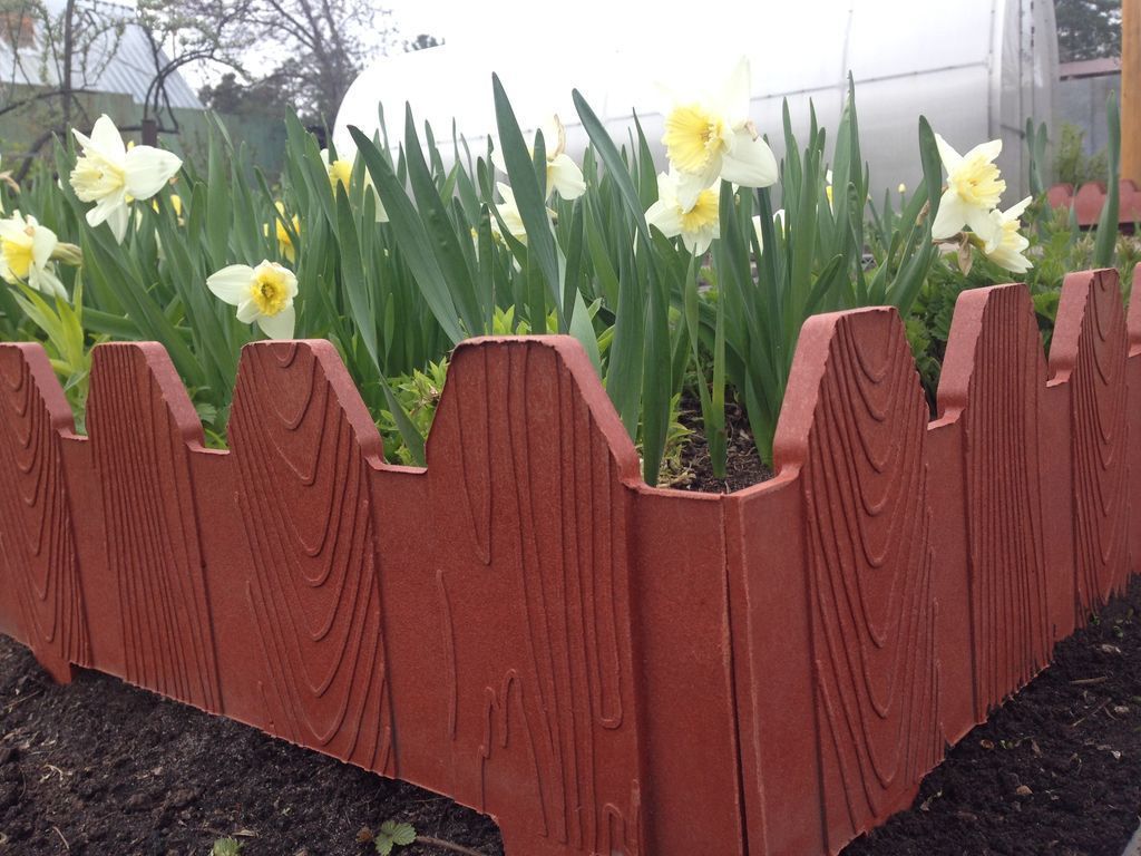 Если цель установки ограды — только декоративная, и нужно разделить участки клумбы, то лучше всего подойдет маленький (5−7 см в высоту) декоративный забор