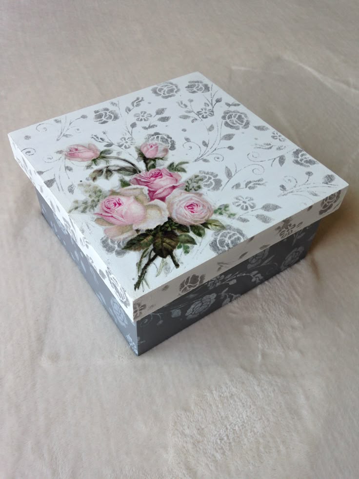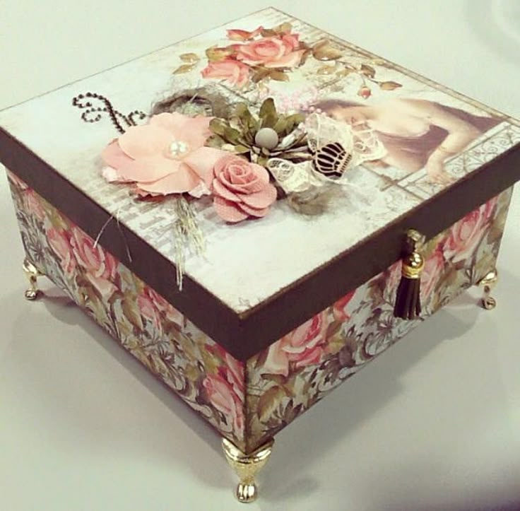 Картонная коробка, оформленная в технике декупаж, является не только емкостью для хранения различных предметов, но и отличным декоративным элементом