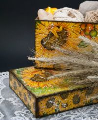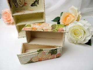 Для этого способа лучше использовать фанерные заготовки так, как в процессе вживления картонная основа может расслоиться. Однако если работать очень аккуратно, то декупажем с вживлением распечатки можно оформить и обувную коробку.