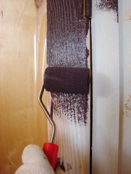 Загрунтовываем нашу дверь темной краской.