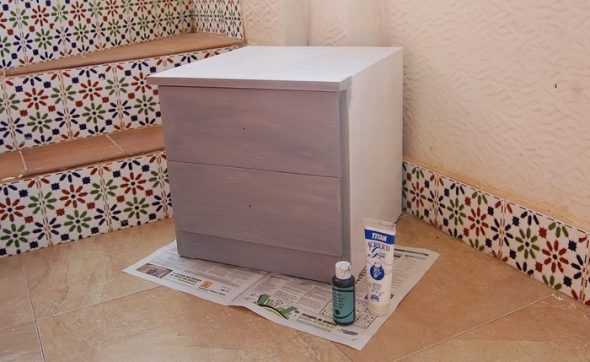 Если старый цвет тумбы просвечивает, то нужно покрыть ее краской еще раз, при необходимости грунтуем дефекты и сколы.