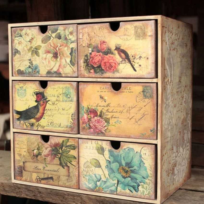 Декупаж позволяет оформить предметы в стиле винтаж